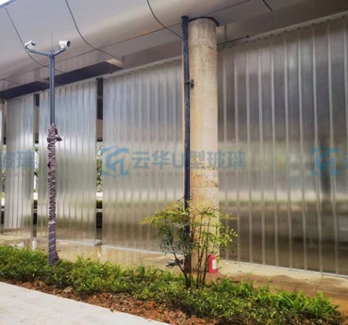 U玻幕墻為無鋼架龍骨結(jié)構(gòu),兩翼起到加強作用,強度超過同厚度普通平板玻璃的10倍以上,能夠自成墻體。